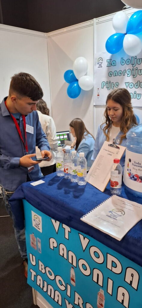 „Na sajmu vježbeničkih tvrtki bilo mi je jako lijepo i zanimljivo. Sudjelovalo je 59 vježbeničkih tvrtki. Vidjela sam kako su poslovale i kako su se predstavile druge vježbeničke tvrtke. Bilo je lijepo vidjeti kreativnost drugih učenika i upoznati druge ljude. Ovo mi je jako lijepo iskustvo koje mi je pomoglo unaprijediti komunikacijske vještine te je doprinijelo povećanju samopouzdanja. Unaprijedila sam brzinu i snalažljivost koristeći aplikaciju koja je prvi put bila korištena danas i koja nam je puno olakšala poslovanje. Jako mi je drago što sam došla. Ovo je bilo jedno prekrasno iskustvo.“ Lucija Orlović, VT Voda Panonia d.o.o.