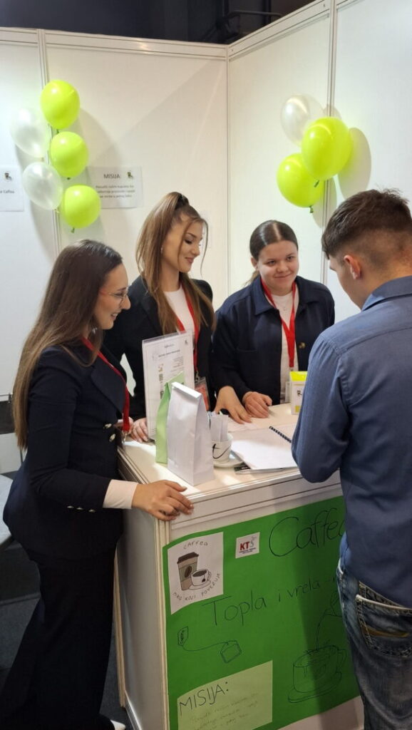 „Na sajmu vježbeničkih tvrtki mi je bilo jako lijepo te sam se upoznala s dosta ljudi. Naučila sam kako se komunicira kada se predstavljaju proizvodi tvrtke i sama tvrtka. Također sam naučila kako kupovati od drugih vježbeničkih tvrtki. Sajam je bio dosta dobro organiziran svatko je imao svoj štand i aplikacija koja se koristila je zapravo dosta olakšala prodaju i kupnju. Bilo mi je jako lijepo, veliko je iskustvo sudjelovati na sajmu. Skupila sam više samopouzdanja i voljela bi ponoviti ovo iskustvo.“ Petra Komljenović, VT Caffea d.o.o.