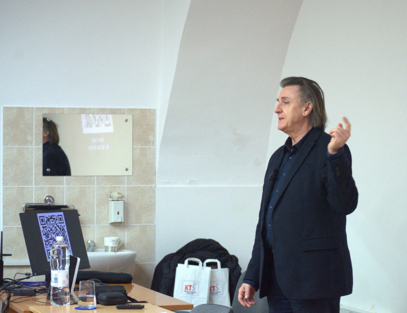 Predavanje prof. dr. sc. Predraga Palea, održano u prostoru Veleučilišta u Bjelovaru 19. prosinca 2025. godine, pružilo nam je važan uvid u trenutak u kojem se naše društvo nalazi. Glavna tema bila je strah od promjena, onaj osjećaj tjeskobe koji svi ponekad osjetimo pred brzim razvojem umjetne inteligencije i digitalnih alata koji mijenjaju naš život i rad. Profesor Pale se osvrnuo na činjenicu da je taj strah prirodan. On se javlja kada izgubimo osjećaj kontrole nad onim što nam je poznato. Ipak, naglasio je, taj strah ne smije biti prepreka, već poziv na prilagodbu.